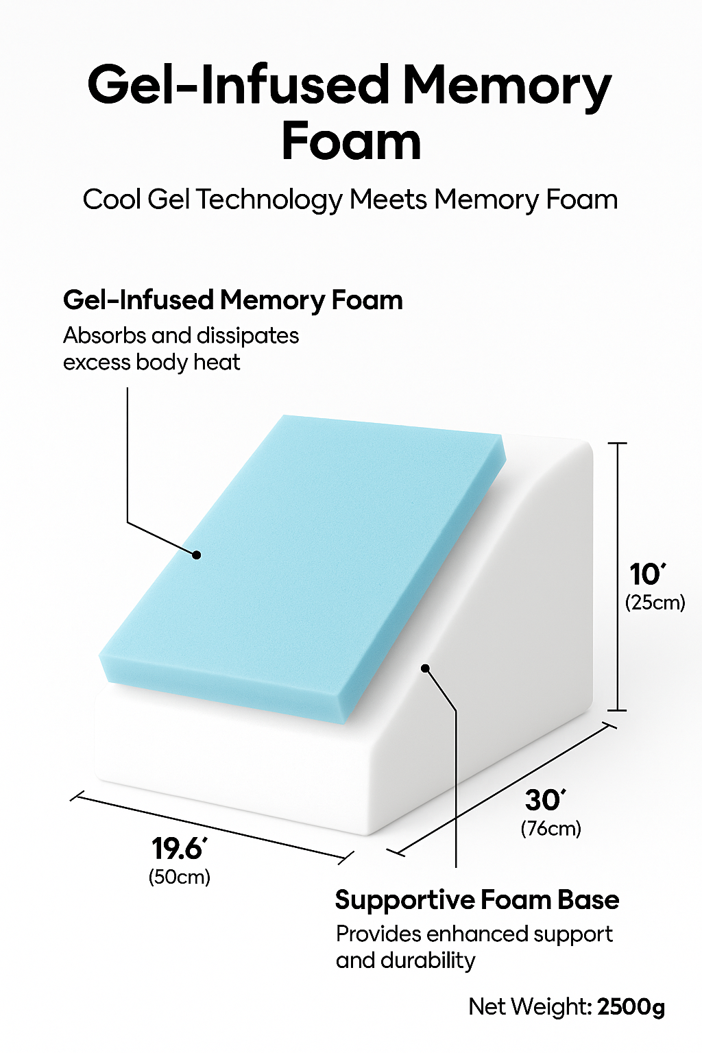 The Restofresh wedge cushion offers ergonomic elevation for your back, legs, or upper body, promoting posture and comfort. Ideal for sleep, reading, or recovery, with breathable fabric, high-density foam, and portable design.